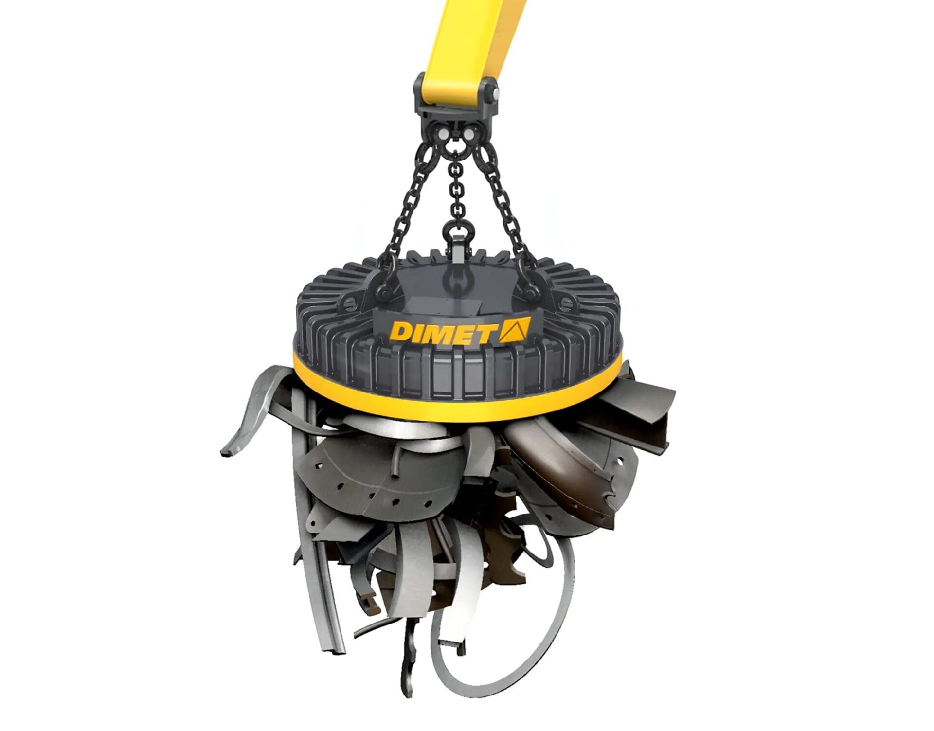Los electroimanes de la serie DIMET EMG-SM se destinan a la manipulación de chatarras, virutas y lingotes de hierro fundido. Esta serie se puede utilizar en prácticamente cualquiera de las máquinas móviles de manipulación de chatarra. Además, pueden fabricarse electroimanes resistentes al calor para cargas calientes (de hasta 650 ˚С).