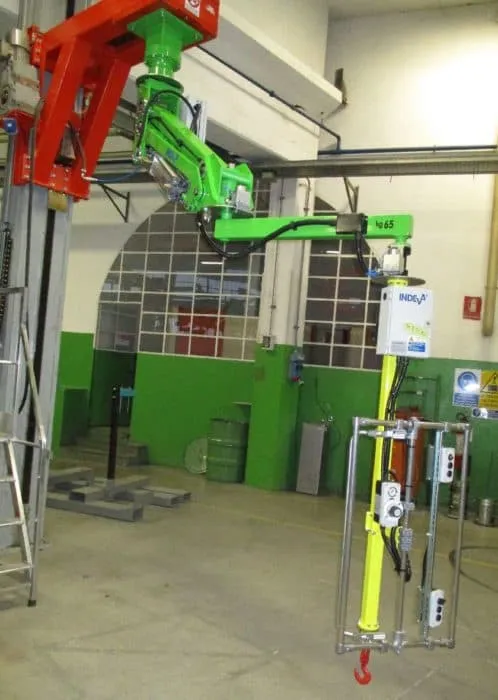 El modelo ERGO se caracteriza por su brazo vertical rígido adecuado para la manipulación de cargas voluminosas y/o que solicitan la toma o el depósito en puntos donde el baricentro se encuentra desplazado respecto a su eje vertical.