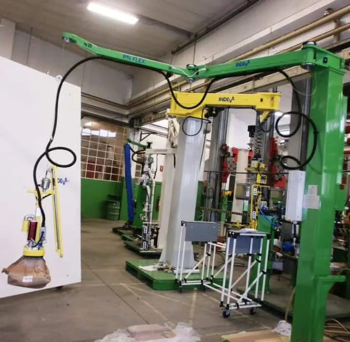 El modelo ERGO se caracteriza por su brazo vertical rígido adecuado para la manipulación de cargas voluminosas y/o que solicitan la toma o el depósito en puntos donde el baricentro se encuentra desplazado respecto a su eje vertical.