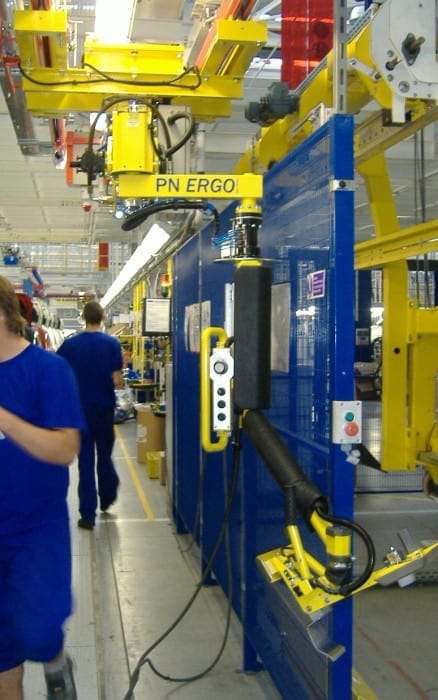 El modelo ERGO se caracteriza por su brazo vertical rígido adecuado para la manipulación de cargas voluminosas y/o que solicitan la toma o el depósito en puntos donde el baricentro se encuentra desplazado respecto a su eje vertical.