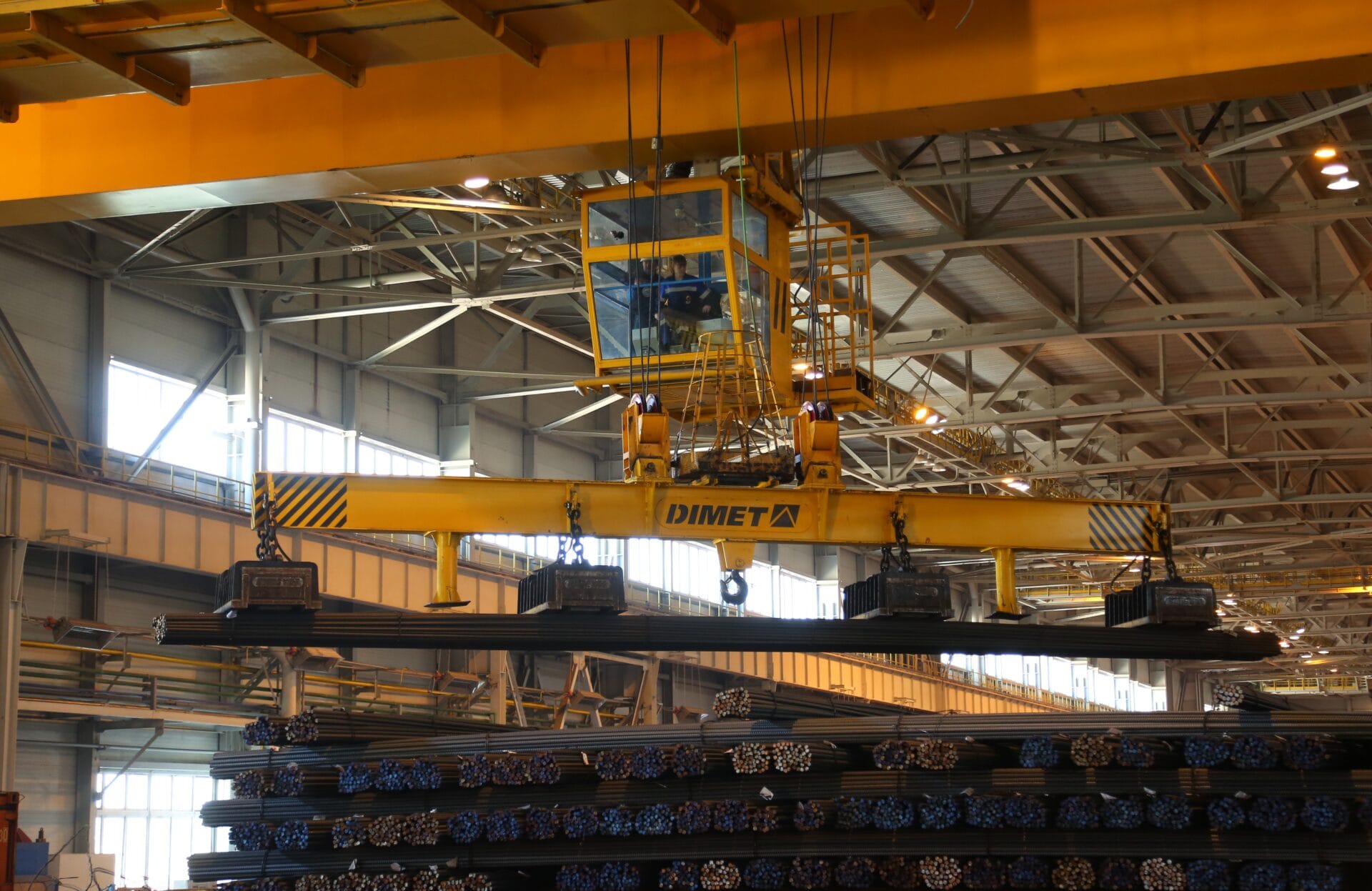 Los imanes DIMET son dispositivos electromagnéticos y electropermanentes que generan un campo magnético intenso para levantar, mover y posicionar piezas ferrosas como chapas, vigas, bobinas, rieles, lingotes y chatarra industrial.